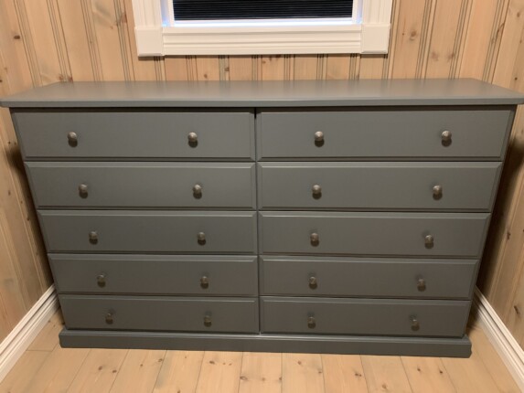 Åsgård 2-dørs garderobe med sittebenk. Spesialbygget til kunde.