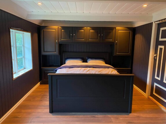 Elvegård seng med plassbygd garderobeomramming