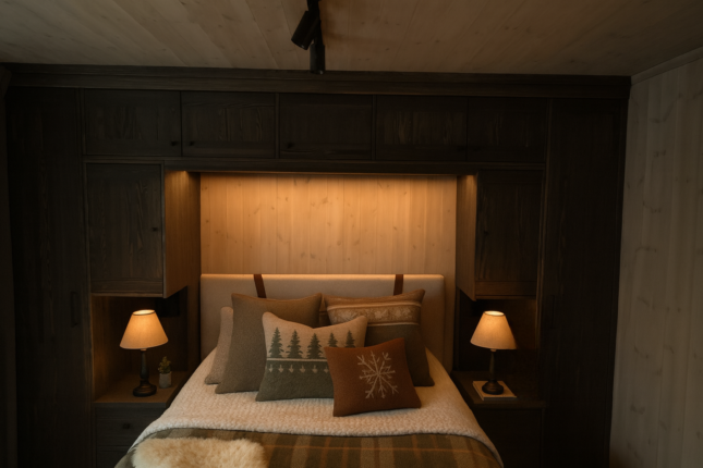Holmgård familiekøye med trappehylle, hjørnemontert