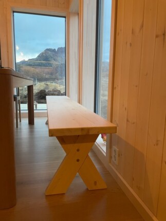 Åsgård 2-dørs garderobe med sittebenk. Spesialbygget til kunde.