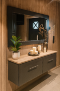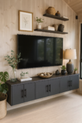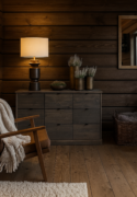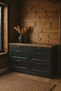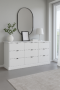 Underdelen kan også leveres som skjenk. Skapet er her vist i Dempet sort Totalmål B: 204 cm, H: 195 cm, D: 48 cm.