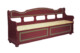 Slagbenken har masse oppbevaringsplass under setet. Her i rød aldringsmalt utførelse.